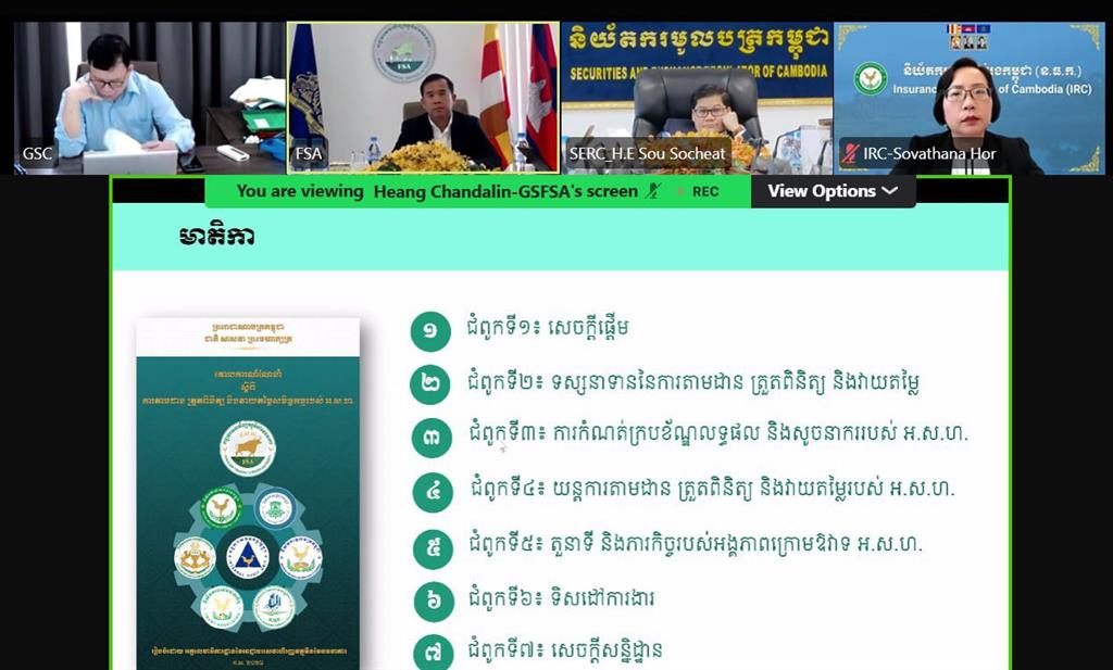 នារសៀលថ្ងៃអង្គារ ៣រោច ខែបុស្ស ឆ្នាំម្សាញ់ សប្តស័ក ព.ស.២៥៦៩ ត្រូវនឹងថ្ងៃទី៦ ខែមករា ឆ្នាំ២០២៦ វេលាម៉ោង១៤:៣០នាទី ឯកឧត្តម ប៊ូ ថារិន អគ្គនាយកនៃនិយ័តករគណនេយ្យនិងសវនកម្ម(ន.គ.ស.) អមដោយថ្នាក់ដឹកនាំ និងមន្ដ្រីជំនាញនៃ ន.គ.ស. បានអញ្ជើញចូលរួម កិច្ចប្រជុំបច្ចេកទេសនៃអង្គភាពក្រោមឱវាទអាជ្ញាធរសេវាហិរញ្ញវត្ថុមិនមែនធនាគារ(អ.ស.ហ.) តាមប្រព័ន្ធសន្និសីទវីដេអូ Zoom ដើម្បីពិនិត្យ និងផ្ដល់យោបល់ទៅលើសេចក្ដីព្រាងដូចខាងក្រោម៖
