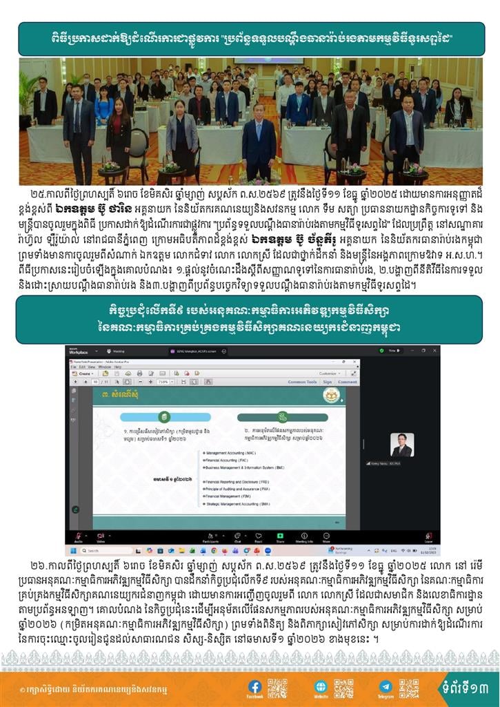 ព្រឹត្តិបត្រព័ត៌មានប្រចាំខែធ្នូ ឆ្នាំ២០២៥ លេខ ០១២ របស់និយ័តករគណនេយ្យនិងសវនកម្ម