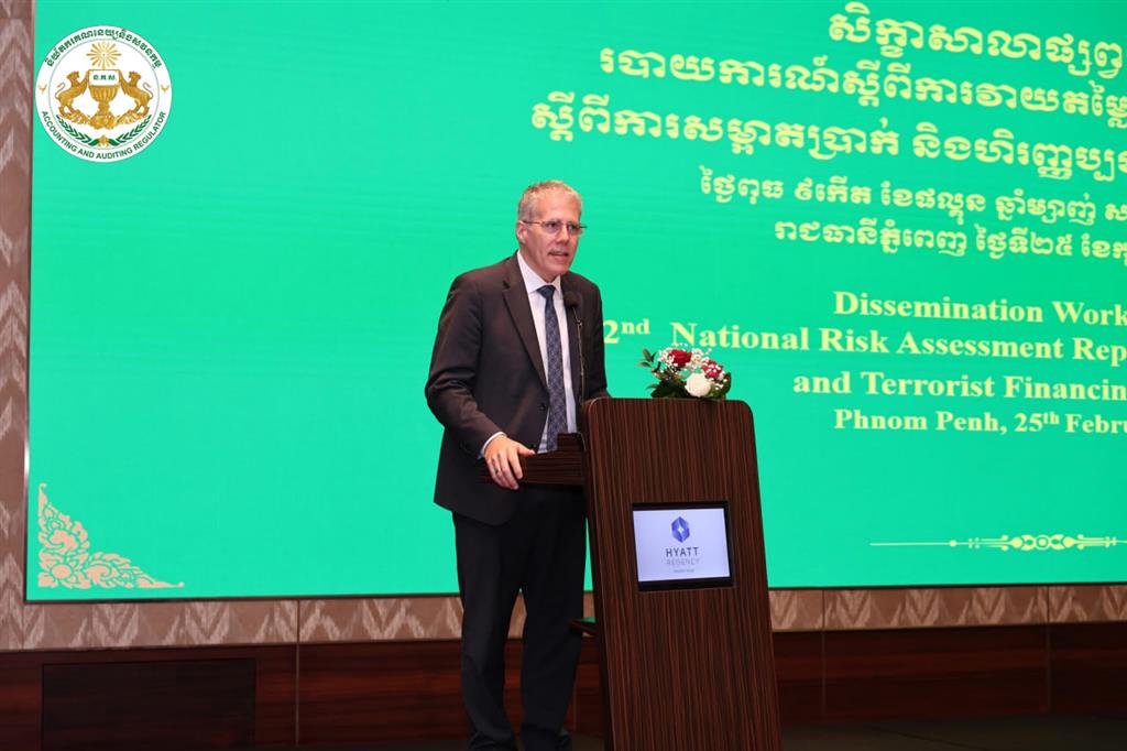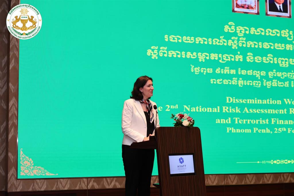 នាព្រឹកថ្ងៃពុធ ៩កើត ខែផល្គុន ឆ្នាំម្សាញ់ សប្តស័ក ព.ស.២៥៦៩ ត្រូវនឹងថ្ងៃទី២៥ ខែកុម្ភៈ ឆ្នាំ២០២៦ វេលាម៉ោង ៨:០០នាទីព្រឹក នៅសណ្ឋាគារ ហៃយ៉ាត់ រីជិនស៊ី ភ្នំពេញ ដោយមានការអនុញ្ញាតដ៏ខ្ពង់ខ្ពស់ពី ឯកឧត្តម ប៊ូ ថារិន អគ្គនាយក នៃនិយ័តករគណនេយ្យនិងសវនកម្ម (ន.គ.ស.) លោក លឹម ចាន់រតនៈ អនុប្រធានការិយាល័យត្រួតពិនិត្យទី១ នៃនិយ័តករគណនេយ្យនិងសវនកម្ម បានអញ្ជើញចូលរួមសិក្ខាសាលាផ្សព្វផ្សាយរបាយការណ៍ស្ដីពី “ការវាយតម្លៃហានិភ័យថ្នាក់ជាតិស្ដីពីការសម្អាតប្រាក់ និងហិរញ្ញប្បទានភេរវកម្ម លើកទី២” ក្រោមអធិបតីភាពដ៏ខ្ពង់ខ្ពស់ លោកជំទាវបណ្ឌិត ជា សិរី អគ្គទេសាភិបាល ធនាគារជាតិនៃកម្ពុជា និងជាអនុប្រធានប្រចាំការគណៈកម្មាធិការសម្របសម្រួលថ្នាក់ជាតិស្ដីពីការប្រឆាំងការសម្អាតប្រាក់ និងហិរញ្ញប្បទានភេរវកម្ម និងហិរញ្ញប្បទានដល់ការរីកសាយភាយអាវុធមហាប្រល័យ។ សិក្ខាសាលាផ្សព្វផ្សាយនេះ ក៏មានការអញ្ជើញចូលរួមពី ឯកឧត្តម Christian DesRoches ឯកអគ្គរដ្ឋទូត កាណាដា ប្រចាំព្រះរាជាណាចក្រកម្ពុជា ឯកឧត្តម លោកជំទាវ ថ្នាក់ដឹកនាំ អញ្ជើញមកពីក្រសួង ស្ថាប័ន ជាតិ និងអន្ដរជាតិ ព្រមទាំងនិយ័តករក្រោមឱវាទអាជ្ញាធរសេវាហិរញ្ញវត្ថុមិនមែនធនាគារដែលពាក់ព័ន្ធ នឹងការងារប្រឆាំងការសម្អាតប្រាក់ និងហិរញ្ញប្បទានភេរវកម្មផងដែរ។