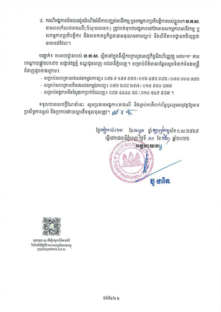 សេចក្តីណែនាំ ស្តីពី ការជូនដំណឹងអំពី ការបញ្ឈប់អាជីវកម្ម ឬសកម្មភាពប្រតិបត្តិការ របស់សហគ្រាស និងអង្គភាពមិនស្វែងរកប្រាក់ចំណេញ
