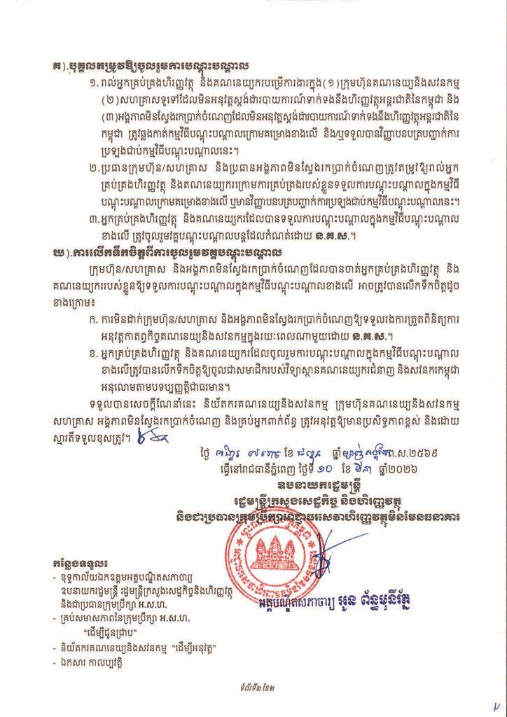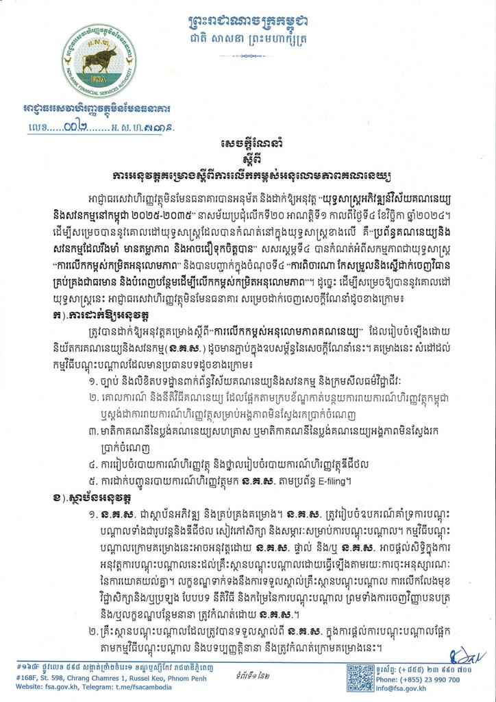សេចក្តីណែនាំស្តីពី ការអនុវត្តគម្រោងស្តីពីការលើកកម្ពស់អនុលោមភាពគណនេយ្យ