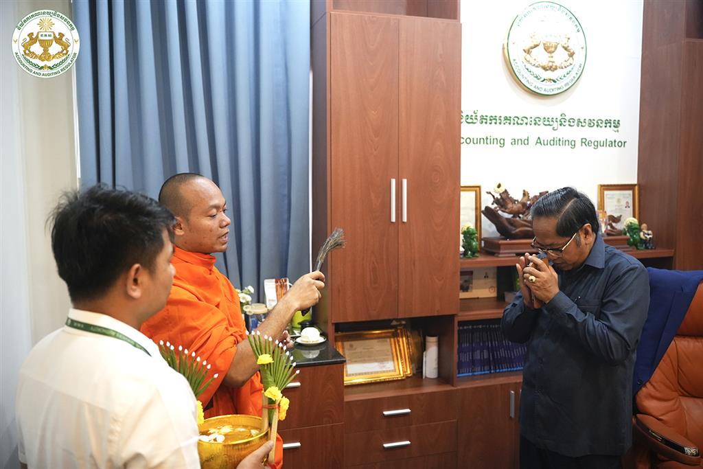 នាព្រឹកថ្ងៃសុក្រ ៨ រោច ខែចេត្រ ឆ្នាំម្សាញ់ សប្តស័ក ព.ស.២៥៦៩ ត្រូវនឹងថ្ងៃទី១០ ខែមេសា ឆ្នាំ២០២៦ នៅអគារ ក នៃក្រសួងសេដ្ឋកិច្ច និងហិរញ្ញវត្ថុ, និយ័តករគណនេយ្យ និងសវនកម្ម បានរៀបចំពិធីសូត្រមន្តចម្រើនព្រះបរិត្តអបអរសាទរពិធីបុណ្យចូលឆ្នាំថ្មីប្រពៃណីជាតិ ឆ្នាំមមី អដ្ឋស័ក ព.ស.២៥៧០ គ.ស.២០២៦ ក្រោមអធិបតីភាពដ៏ខ្ពង់ខ្ពស់របស់ ឯកឧត្តម ប៊ូ ថារិន អគ្គនាយក នៃនិយ័តករគណនេយ្យ និងសវនកម្ម ព្រមទាំងមានការចូលរួមពីលោក លោកស្រី អគ្គនាយករង ថ្នាក់នាំ និងមន្ត្រីរបស់ ន.គ.ស.។