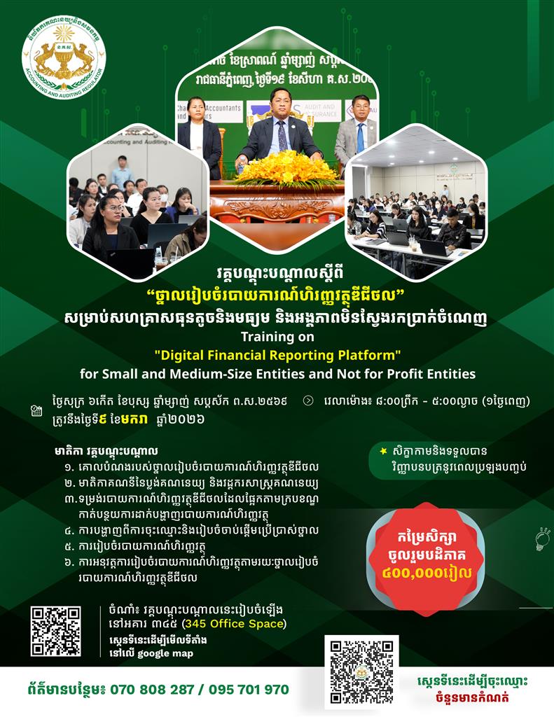 វគ្គបណ្តុះបណ្តាល ស្តីពី "ថ្នាលរៀបចំរបាយការណ៍ហិរញ្ញវត្ថុឌីជីថល" សម្រាប់សហគ្រាសធុនតូចនិងមធ្យម និងអង្គភាពមិនស្វែងរកប្រាក់ចំណេញ