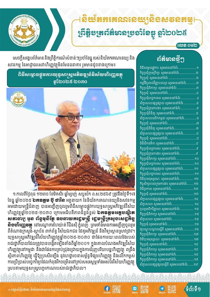 ព្រឹត្តិបត្រព័ត៌មានប្រចាំខែធ្នូ ឆ្នាំ២០២៥ លេខ ០១២ របស់និយ័តករគណនេយ្យនិងសវនកម្ម