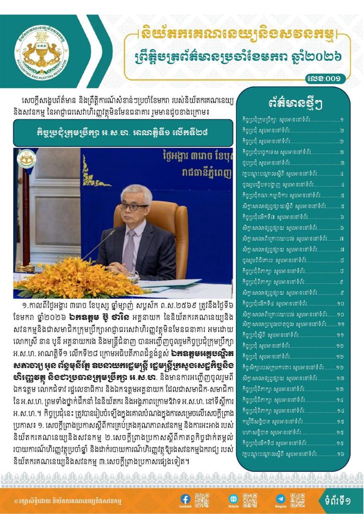 ព្រឹត្តិបត្រព័ត៌មានប្រចាំខែមករា ឆ្នាំ២០២៦ លេខ ០០១ របស់និយ័តករគណនេយ្យនិងសវនកម្ម