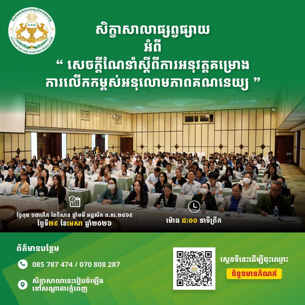 សិក្ខាសាលាផ្សព្វផ្សាយអំពី “ សេចក្តីណែនាំស្តីពីការអនុវត្តគម្រោង ការលើកកម្ពស់អនុលោមភាពគណនេយ្យ ”